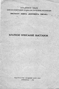 Краткое описание выставок [Текст] / Акад. наук СССР. - Ленинград: изд-во Акад. наук СССР, 1932 (тип. изд-ва Акад. наук СССР). - Обл., 7 с.: без т. л.;