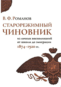 Романов В.Ф. Старорежимный чиновник: из личных воспоминаний от школы до эмиграции, 1874-1920 гг. / В.Ф. Романов; ответственный редактор, [вступительная статья, комментарии и аннотированный именной указатель]: к.и.н. С.В. Куликов Российская академия наук, Санкт-Петербургский институт истории. - Санкт-Петербург: Нестор-История, 2012. - 336 с., - ISBN 978-5-90598-779-3